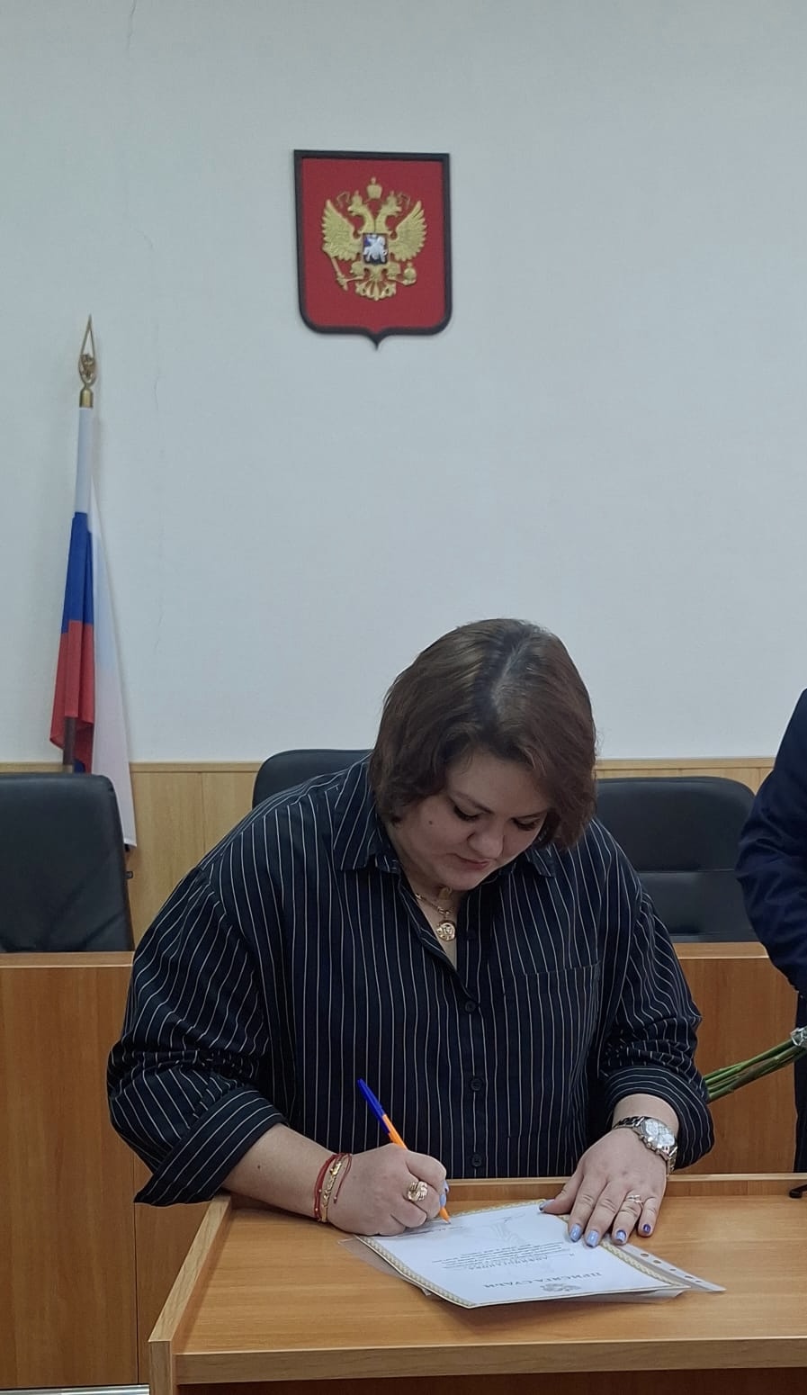 Указом Президента Российской Федерации от 21 февраля 2025 года №93 «О назначении судей федеральных судов и о представителях Президента Российской Федерации в квалификационной коллегии судей Калужской области» Анфиногенова Анастасия Евгеньевна назначена судей Гуковского городского суда Ростовской области. 4 марта 2025 года в Гуковском городском суде Ростовской области состоялось собрание, на котором в торжественной обстановке судья Анфиногенова А.Е. принесла присягу. |